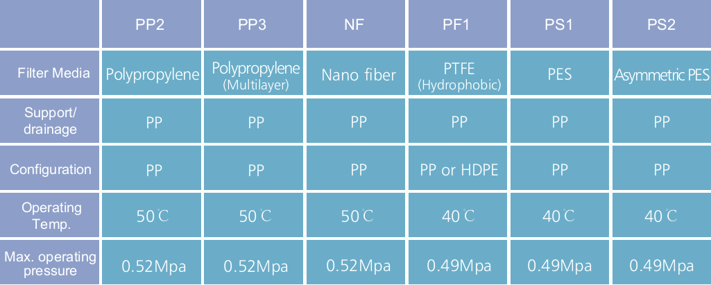 根据不同过滤场合,滤材有多种不同材料可以选择。